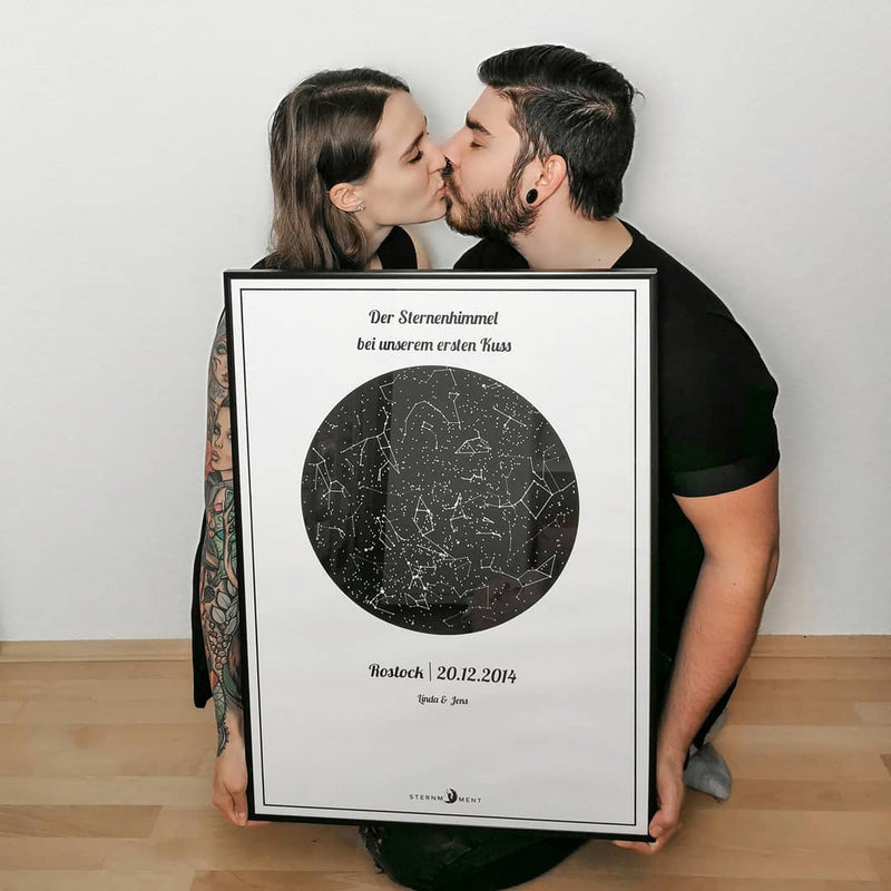 Wähle ein Design, wähle den Ort und das Datum und wir berechnen deinen persönlichen Sternenhimmel sekundengenau.