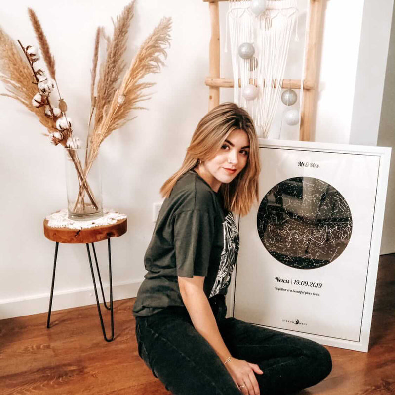 Personalisiere dein Sternbild Poster mit einem individuellen Text, der dich an deinen Moment zurück erinnert.